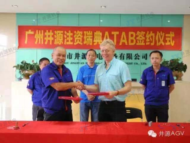 On the morning of June 25, 2015, Zhou Zhengjun, general manager of Guangzhou Jingyuan Electromechanical Equipment Co., Ltd., and Tony Magnusson, president of Atab Automationsteknik AB, signed a cooperation agreement. The two parties conducted in-depth discussions on the application and development of AGV intelligent logistics and AGV intelligent equipment and reached a consensus. Following the establishment of the joint venture company between the two parties, Guangzhou Jingyuan once again injected capital into Sweden's Atab Company by means of capital increase, becoming the company's second largest shareholder. Attending the signing ceremony were Zhu Hongguang, deputy general manager of the group company Tianjin Saixiang Technology Co., Ltd., Tan Xiaolong, deputy general manager of Guangzhou Jingyuan Electromechanical Equipment Co., Ltd., and Leng Quqiang, general manager of the joint venture company Guangzhou Max Machinery Co., Ltd. Leng Quqiang.